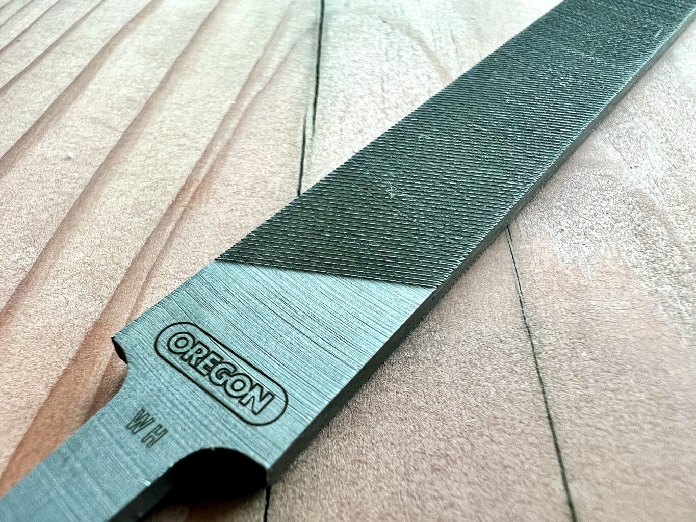 Oregon flat file for reducing depth guages. To see this in practice watch the depth guage reduction part of the video (at 4min onwards).
