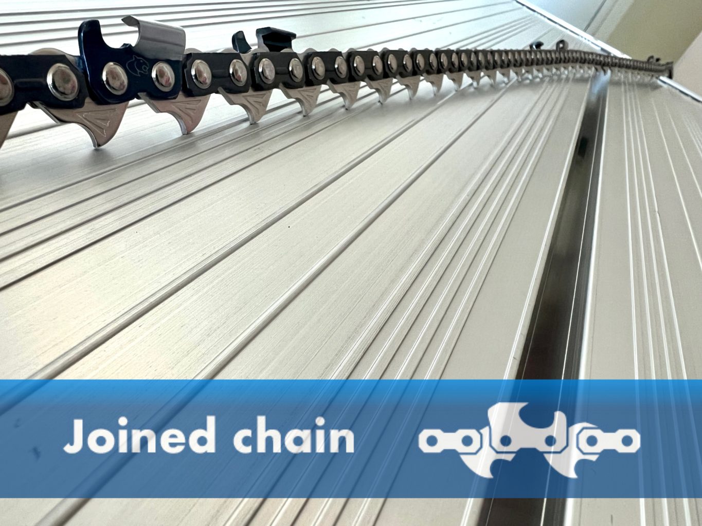 Specialised ripping chain this Hyper Skip chain has x10 extra gaps between each pair of teeth. This helps keep chain speed higher when using a longer bar with a longer saw. This gives a smooth even feel to milling timber. The timber itself can have a slightly rougher texture. But it really helps to keep chain speed up on very long bars.