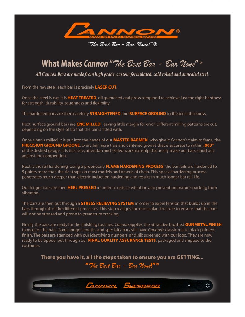 The Cannon SuperBar power plus profile maximizes cutting power and chain speed while reducing damage from loose chain.
