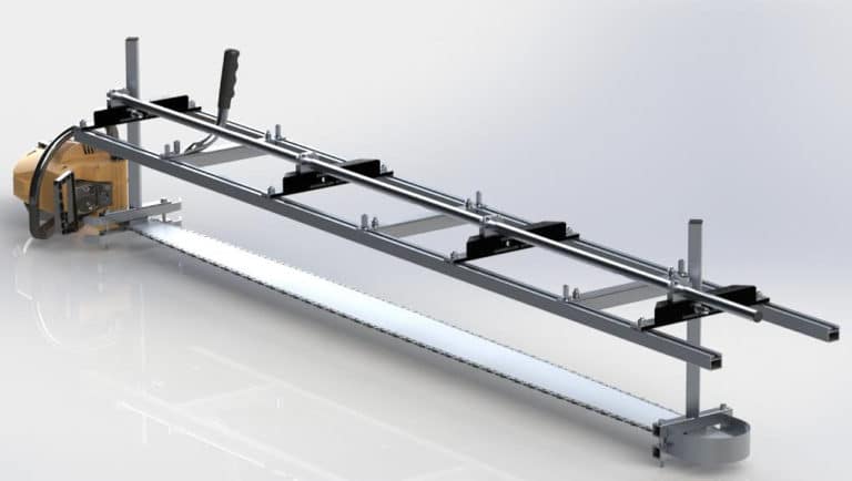 Use description: This versatile, heavy-duty chainsaw lumber mill accurately cuts planks and beams up to 32” wide and 1/2” to 13” deep. Clamps onto your chainsaw bar with no drilling required. Lightweight and portable, enables user to mill lumber where the tree falls. No previous experience required! New CNC-Machined billet end brackets! (See photo) These new end brackets are more accurate, easier to adjust, create less vibration than the old die cast version and are virtually unbreakable. Perfect for homeowners, woodworkers, arborists and sawyers. Optimal results will be had when used with ripping chain [buy a ripping chain to suit your saw using our selector service click here].