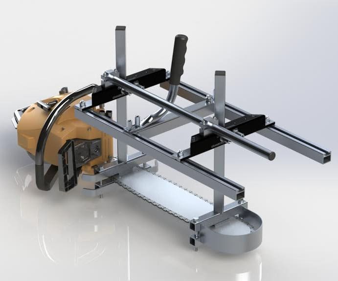 Use description: This versatile, heavy-duty chainsaw lumber mill accurately cuts planks and beams up to 32” wide and 1/2” to 13” deep. Clamps onto your chainsaw bar with no drilling required.  Lightweight and portable, enables user to mill lumber where the tree falls. No previous experience required! New CNC-Machined billet end brackets! (See photo) These new end brackets are more accurate, easier to adjust, create less vibration than the old die cast version and are virtually unbreakable. Perfect for homeowners, woodworkers, arborists and sawyers.  Optimal results will be had when used with ripping chain [buy a ripping chain to suit your saw using our selector service click here].