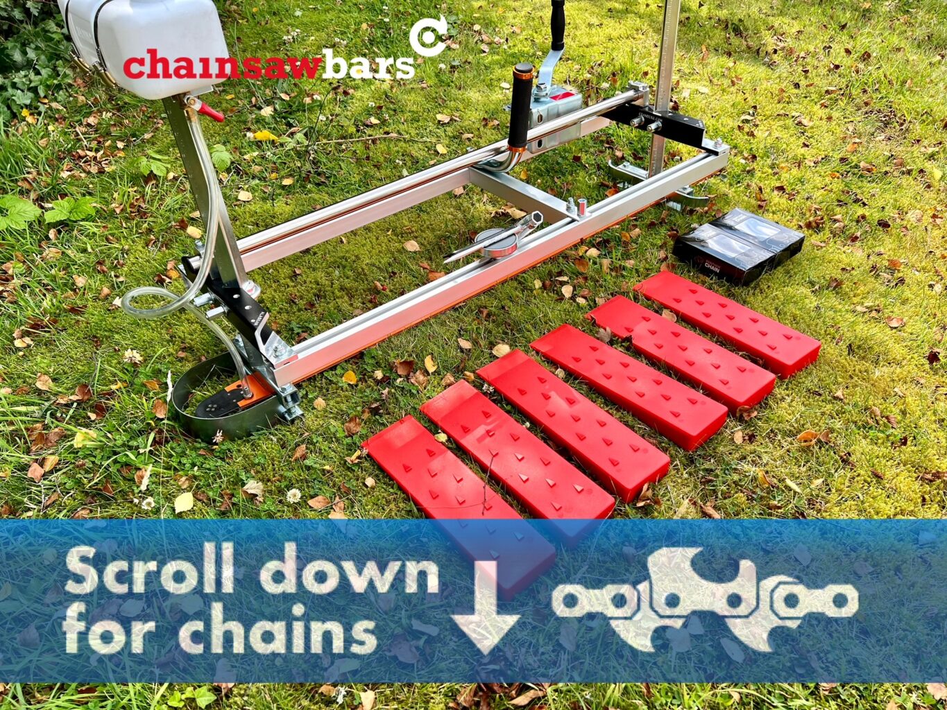 Use description: This versatile, heavy-duty chainsaw lumber mill accurately cuts planks and beams up to 32” wide and 1/2” to 13” deep. Clamps onto your chainsaw bar with no drilling required. Lightweight and portable, enables user to mill lumber where the tree falls. No previous experience required! New CNC-Machined billet end brackets! (See photo) These new end brackets are more accurate, easier to adjust, create less vibration than the old die cast version and are virtually unbreakable. Perfect for homeowners, woodworkers, arborists and sawyers. Optimal results will be had when used with ripping chain [buy a ripping chain to suit your saw using our selector service click here].