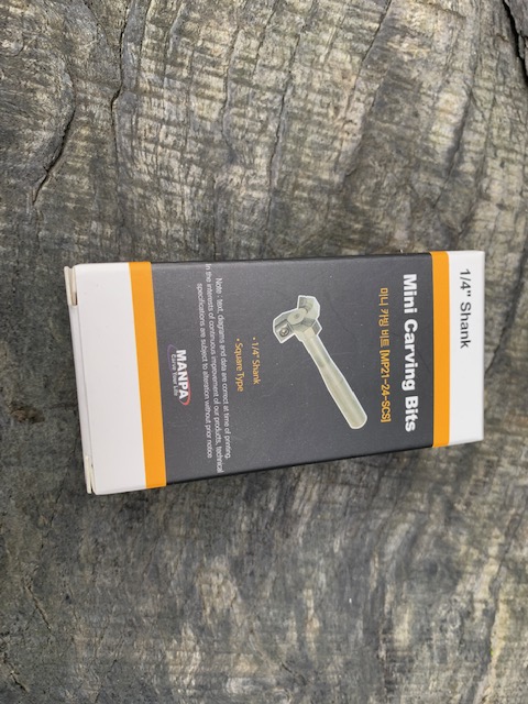 Small carving tool which can be used in a Dremel style tool. Most tool holders require a 6mm shank, this one is 1/4″ for the occasional machine that requires a 1/4″ shank.