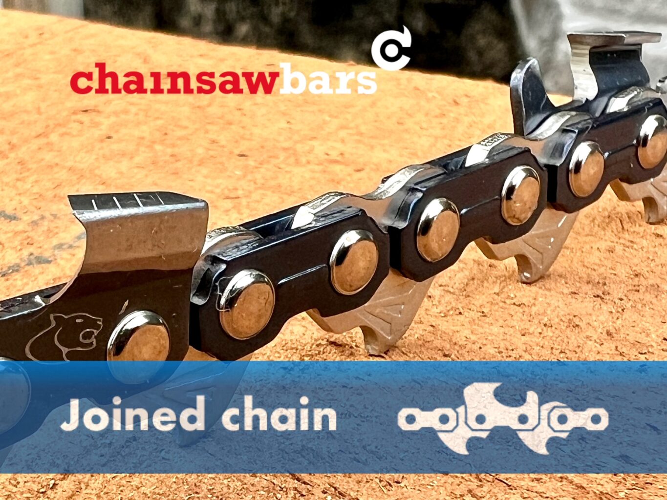 New Panther + chain [patent pending]. The + stands for additional line markings on the top plate of the tooth which helps give a visual guide to the angle you are sharpening at but more importantly it helps you judge the tooth length in relation to the other teeth on the chain. One of the hardest things to do with a chainsaw chain [without a guide] is to ensure each tooth is the same length and the same angle as all it’s brothers. If not cutting becomes inconsistent, vibration increases, the teeth that are longer take big bites of the wood and dull faster.
