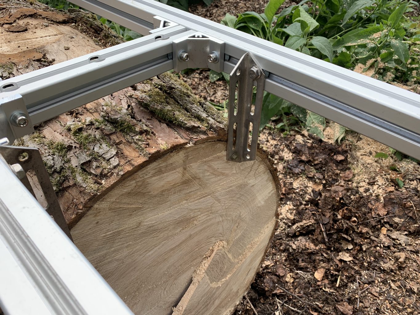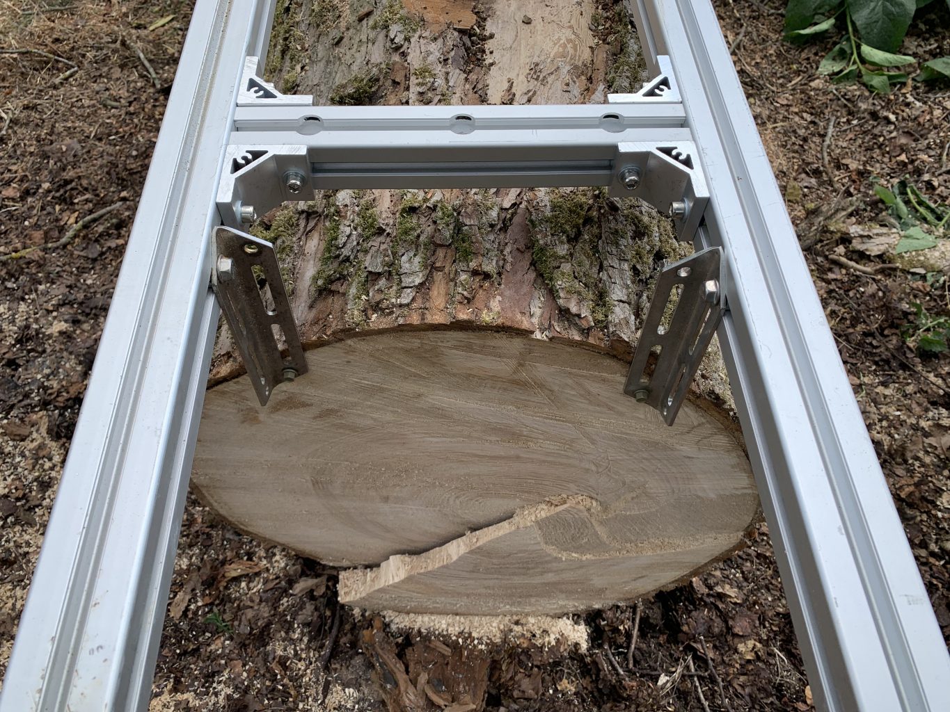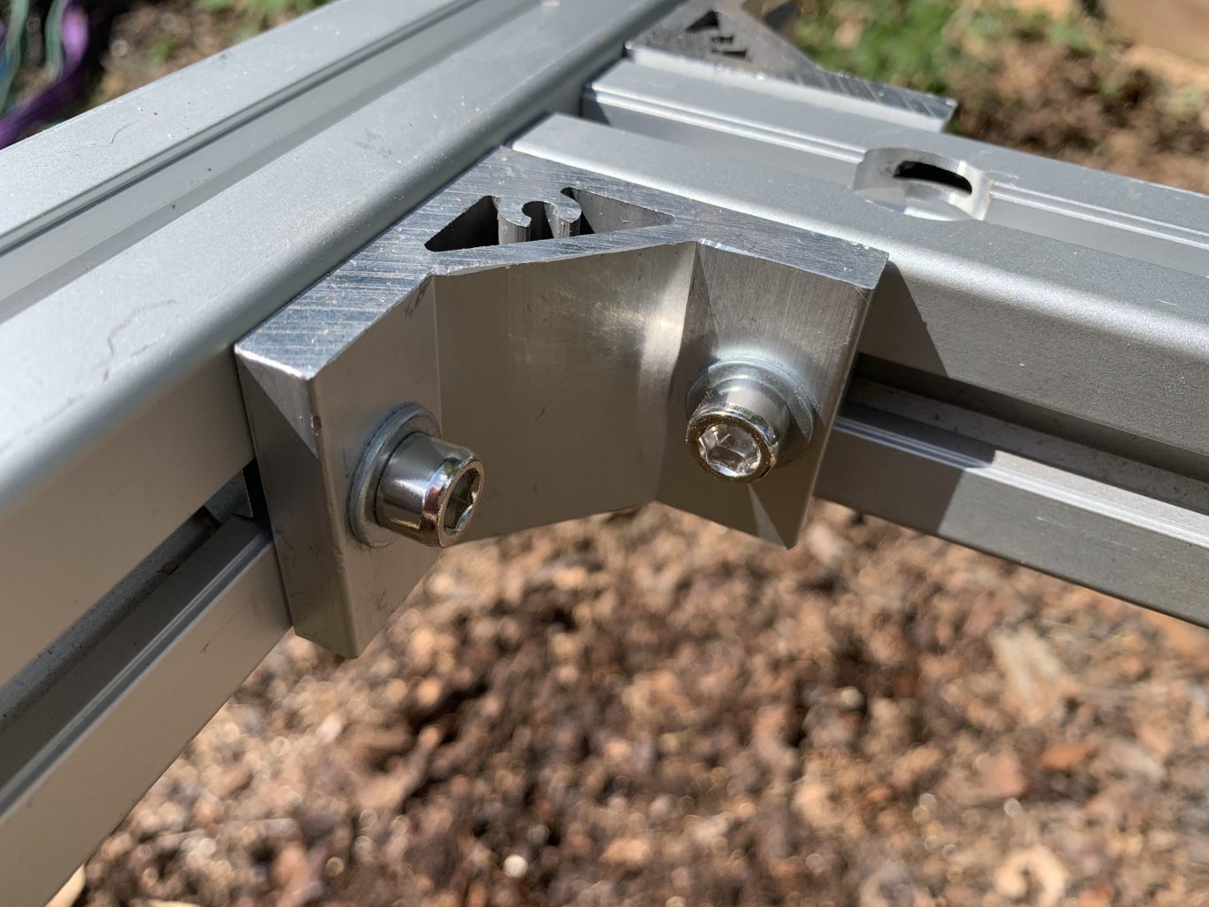 These large external corner brackets secure the rungs to the long profile pieces. Loosening the allows you to slide the rung up and down easily and quickly.