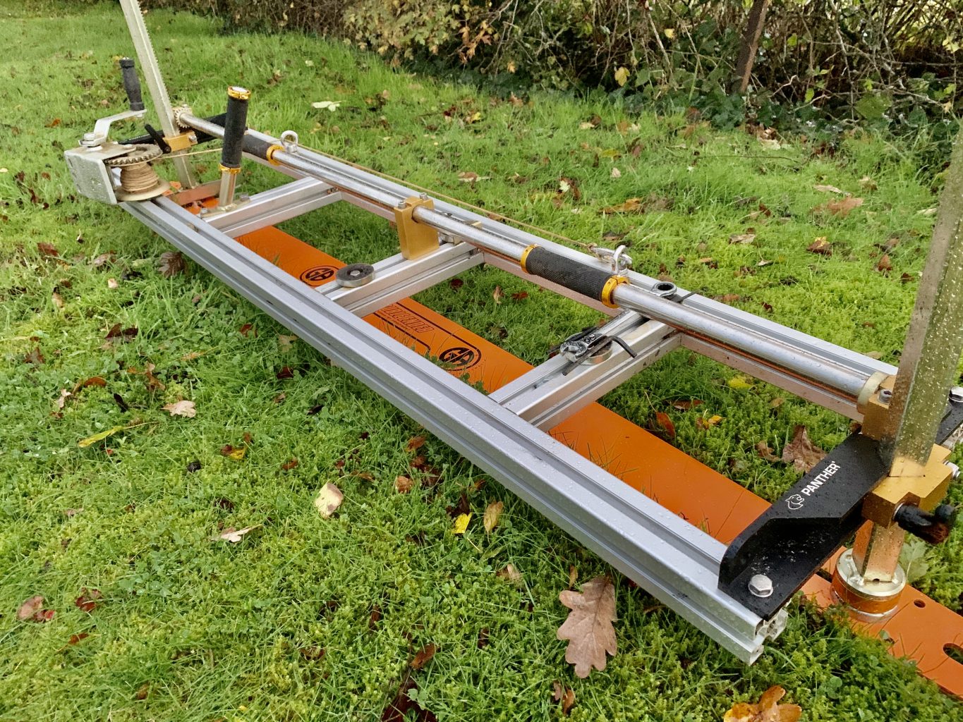 Panther HD Double Ended Chainsaw Mill. Comes with chainsaw for the far end of the mill. These set ups are designed to run with x2 chainsaws for best effect [these are not included with this kit]. The mill is built using heavy duty 45mm profile is the biggest toughest mill you will find on the market. Note you may have to cut the profile and round control tube shorter in order to fit your own set up.