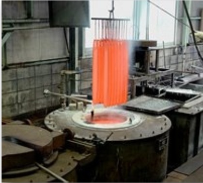 Guide bars require both of contrasting characteristics of toughness and hardness. Tsumura has adopted salt heat treatment that draws both of the contrasting characteristics. The salt bath heat treatment is the best way to achieve ideal steel which has toughness and hardness. Normally, Steel is heated over 800°C immediately, but the salt bath heat treatment provides a gradual steady heat method. Then, a good hardened steel structure, which is stable with less distortion, can be obtained.